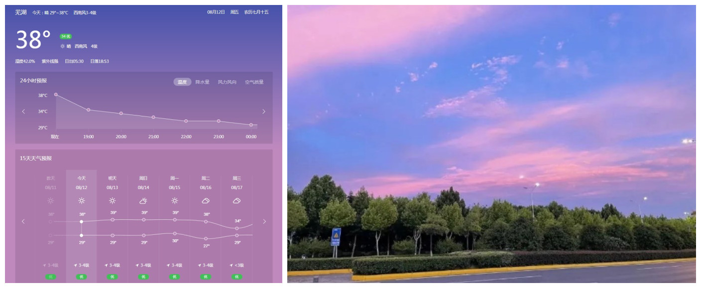 另外,最近的晚霞絢麗多彩,大家下班路上或是飯后散步可以駐足欣賞,酷暑炎熱中也有不可錯(cuò)失的驚喜哦。