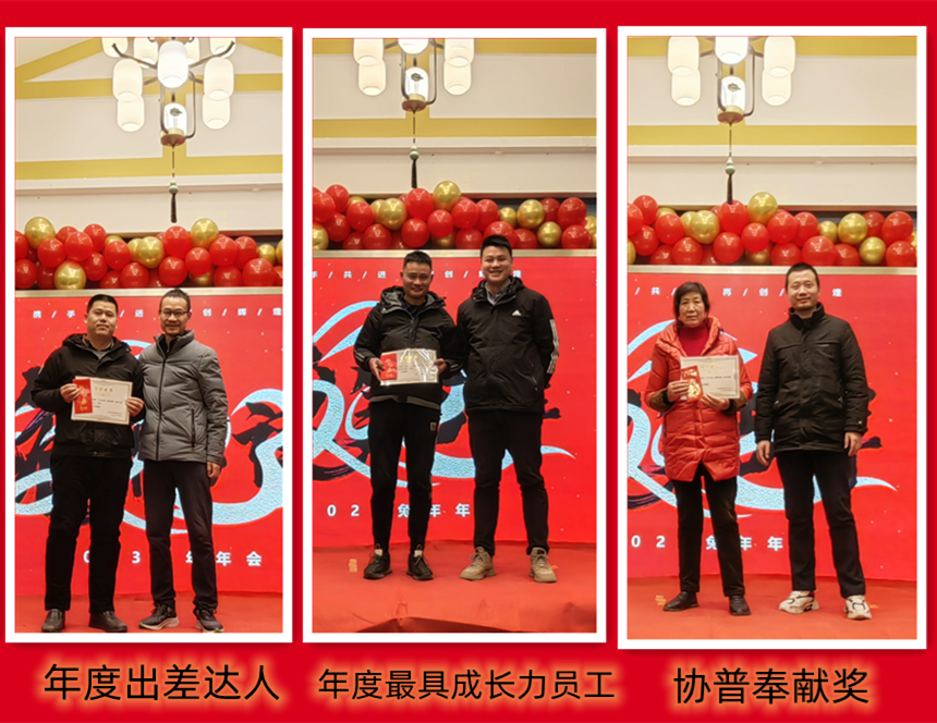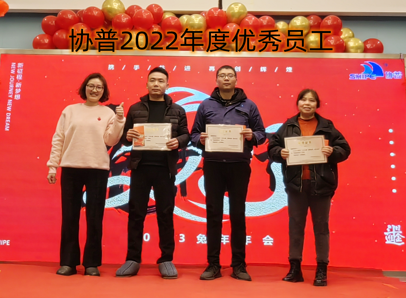 趙總致辭后,公司為2022年度表現(xiàn)優(yōu)異的團隊和個人進行了表彰。人才是公司生存和發(fā)展之本。公司發(fā)展的每一步都離不開每個協(xié)普人的努力和付出。本年度公司共評選出三名優(yōu)秀員工——陶?;顒?、徐金鳳,“2022年度突出貢獻獎”——張傳東、桂佳俊,“2022年度敬業(yè)獎”——陳阿龍,“年度宣傳小能手”——宋玉秋;“協(xié)普年度出差達人”——胡金龍,“年度最具成長力員工”——王傳銀,“5S進步團體”——技術部、車間鉚焊班,“質量進步團體”——質量部,“協(xié)普奉獻獎”——劉庭玉。