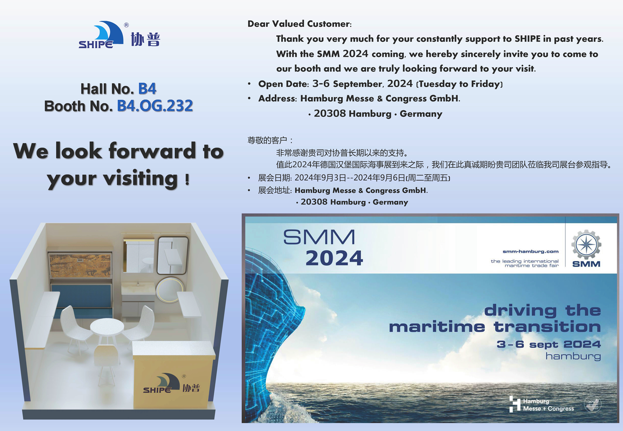 Welcome to attend 31st SMM Hamburg – 歡迎參加2024年第31屆德國漢堡海事展
