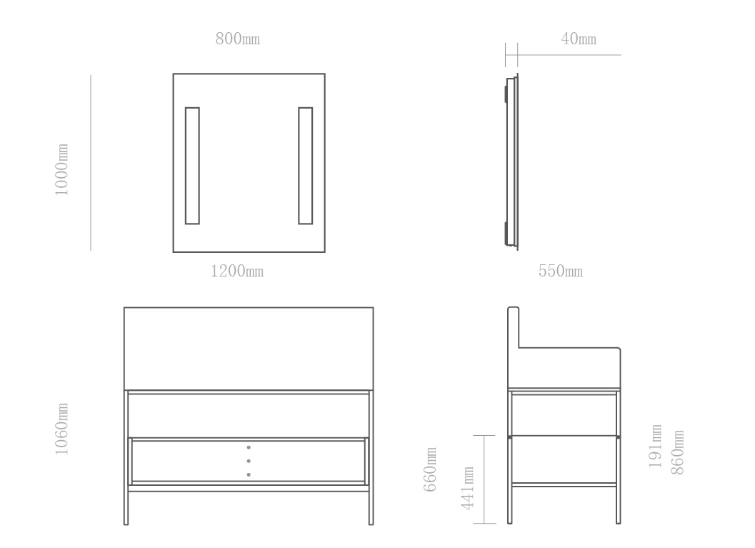 尺寸:化妝鏡 800X1000X40 (mm) + 浴室柜1200X550X1060 (mm)