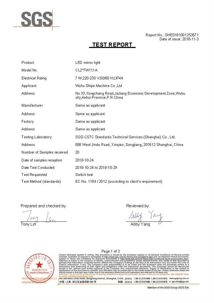 SGS證書